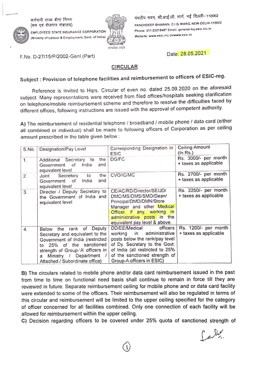 PHONE/MOBILE CIRCULAR ESIC HQ